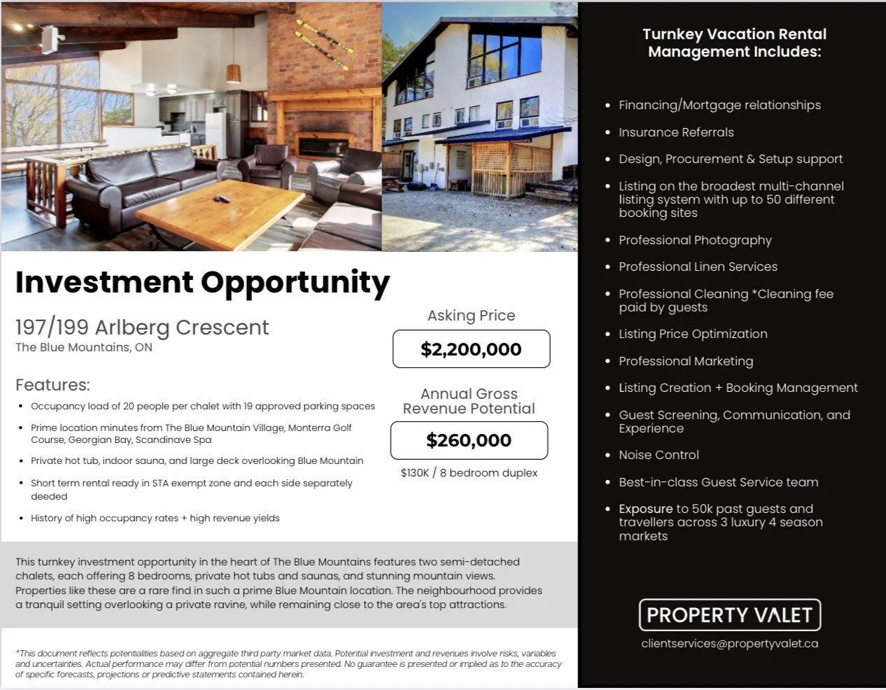 Discover a rare turnkey short-term rental investment in the heart of The Blue Mountains, Ontario. Just minutes from Blue Mountain Village, Monterra Golf Course, Georgian Bay, and the Scandinavian Spa, this property offers unbeatable income potential in a four-season destination.